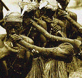 > Jeu inspiré de la musique de trompes des Banda-Linda, en Centrafrique