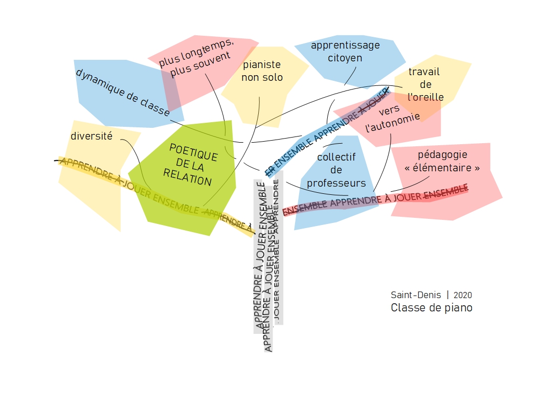Dans la classe de piano du conservatoire de Saint-Denis, le collectif irrigue les trois cycles et les différents ateliers hors-cursus (ados, adultes et ateliers ponctuels hors les murs). L’équipe de quatre professeurs travaille elle aussi en collégialité, un collectif qui nourrit pédagogie et pratique artistique.