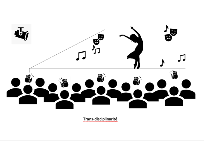 La transdisciplinarité ne fait pas consensus auprès des chercheurs, si ce n’est dans le sens où elle implique un au-delà des disciplines. Elle peut désigner à travers, ou signifier un effacement des frontières entre les disciplines, ou encore être rattachée aux compétences transversales6. On peut donner comme exemple de transdisciplinarité un(e) artiste qui, dans un spectacle, danse et chante tout en interprétant un rôle.